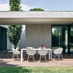 Strict geometric design marks out this modern garden table. Four Outdoor is completely made of galvanized steel and painted with epoxipoliestere white.
