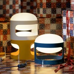 Joe Colombo's KD28 lamp retains the original 1967 design, reinterpreted with recycled materials and contemporary lighting solutions.