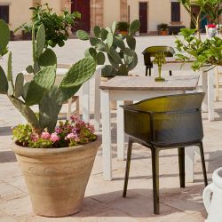A slender vertical pebbling running along the entire welcoming backrest of Papyrus, a made in Italy armchair perfect for both indoor and outdoor furniture.