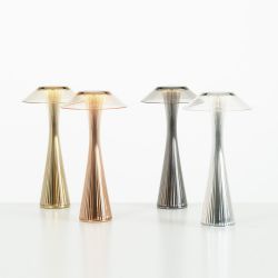 Inspired by the famous Seattle Space Needle, this wireless lamp is made of plastic material with a metallic finish. Space is equipped with a rechargeable battery.