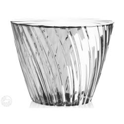 The coffee table-container is made of transparent polimethymethacrilate with inside and out pleating.