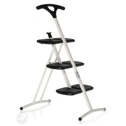 Handful, folding and elegant this made in Italy stepladder has got white, black, metallic dark grey varnished steel structure and black polypropylene steps with slip-resistant finish.