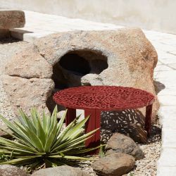 The T-Table coffee table features an alternating pattern of solids and voids reminiscent of embroidery, honeycomb, or coral formation. Perfect for both individual and group use.