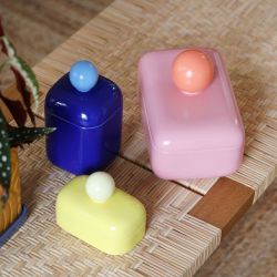 Designed for storing small accessories, jewellery, sweets and much more, it is made of colored glazed ceramic.