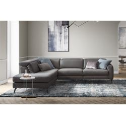 This sofa is ideal for the living room thanks to its simple and functional design. It comes with adjustable headrests and with an optional relax system that raises the footrest and reclines the backrest.