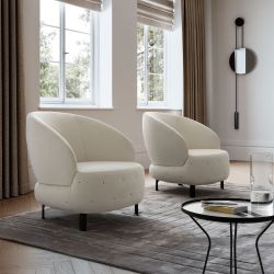 The Guenda armchair has a design with enveloping lines, ideal for completing the furnishings of the living room or bedroom. This armchair is characterized by the stitching with a quilted motif on the base of the seat. The feet are in black painted metal.