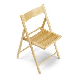 Folding chair with a natural or walnut-stained beech wood frame. Featuring a seat with horizontal slats.