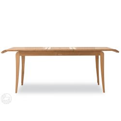 Original with its two bent edges, this garden table has got central extension which disappears under the top.