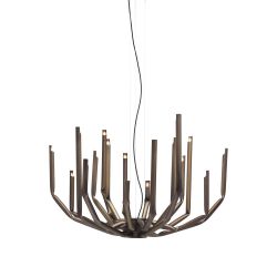 To Be is a mechanical chandelier with a strong industrial inspiration, derived from a crushed pipe and deformed by the mechanical bending, laser cutting and welding.