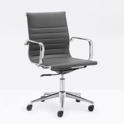 The low-backed shell is equipped with practical chromed steel armrests.