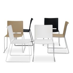 The sled structure of this chair is made of metal rod and is available in chromed or gray painted finishes. Seat and backrest are instead made of polypropylene , available in different colours.