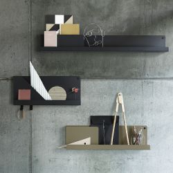 Each shelf come with two bolts for mounting and two hooks. Available acrylic powder coated in several colours and sizes: