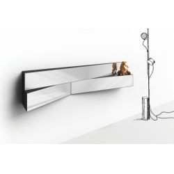 The Look shelf collection is ideal for creating creative compositions of shelves, taking advantage of the asymmetrical triangular shape and the mirrored surface on the front.