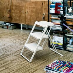 The structure is made of chromed or painted steel tube, while the steps are in ABS. Being foldable, it is easy to store because it takes up little space.