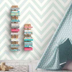 Design bookcase to hang on the wall, to have, at a glance, the full view of your book collection in your home office. The shelves, which are developed around the central structure, allow you to store books horizontally.