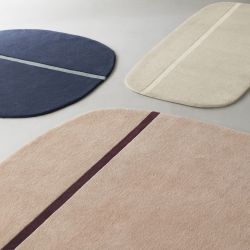 The solid color is broken by a straight line, of a different color and 3 mm less thick than the rest of the carpet: a detail that creates asymmetry and visual contrast.