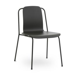 The combination of the black steel structure and the veneer seat conveys a graphic freshness and a contemporary, modern look. The seat could be in oak wood or in lacquered ash veneer wood, painted in many colours. It is available also in upholstered version. The wide backrest provides maximum comfort.
