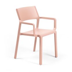 Equipped with comfortable armrests, this modern chair is made entirely of resin with fiberglass, a particularly resistant material with a matte finish .