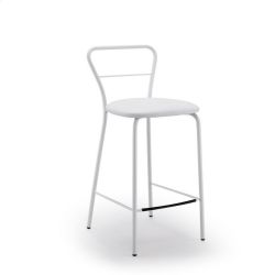 The structure of the stool is in painted metal, while the seat is padded and covered in imitation leather.