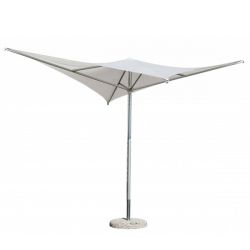 The shape of this parasol is square, but with the corners at two different heights, in order to obtain the dynamic effect of the cover.