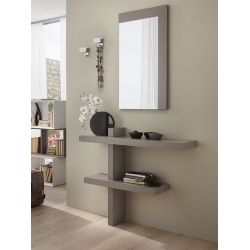 Entrance furnishings composed of staggered column console and two shelves, mirror with two coloured edges and two hangers.