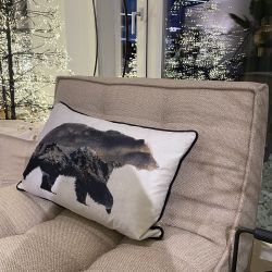This cushion depicts animals and natural landscapes.