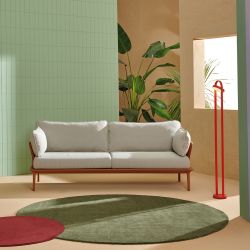 The Reva Twist sofa is designed for three seaters; the structure is in coated aluminium, covered with flat woven rope matching with the frame.