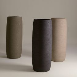 Plant pot with sand effect surface, made of material composed of fiberglass and clay. Lightweight and at the same time very resistant to UV rays, cold climates and bad weather. Perfect to put under the porch, on the terrace or in the garden.
