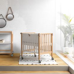 Win is a crib with a movable side, a multi-position base, and four rubber wheels. Win is a bedside crib, adjustable thanks to the base's positions and the bed attachment system. With modern lines and refined finishes, the Win crib fits perfectly into any bedroom.