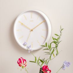 Wall clock, designed by Armando Breeveld, is available in white painted metal with gold-colored details, it is perfect for placing in the home or office, adding a modern and chic touch.