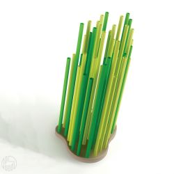 Design umbrella stand inspired by a piece of land, with all its blades of grass, removed by the plow.