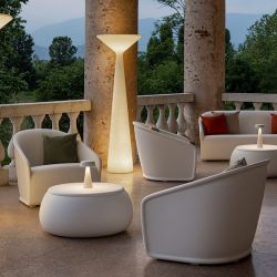 The outdoor version, fully illuminated, is perfect for decorating terraces or gardens, creating truly unique and impactful atmospheres: made entirely of polyethylene , a 100% recyclable and very resistant thermoplastic material.