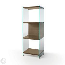 This modern bookcase has got sides in tempered glas with 10 mm thickness. The 25 mm thick shelves are laminated and available in various colours.