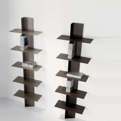 The column is made of painted steel with a sandblasted finish, while the shelves are made of aluminum. Both are available in different colors.