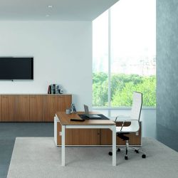 - The structure of the cabinet is in the same color as the legs of the desk, the sliding doors are in melamine in the same color as the top. On request it is possible to order the doors with a different finish.