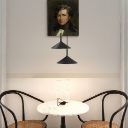 The Dry suspension lamp can be used individually or in composition with other elements: on request, a ceiling rose or track can be ordered to connect more light points and create a larger chandelier.