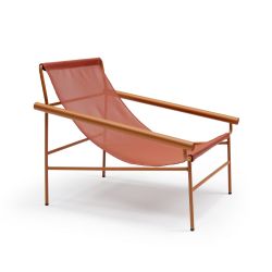 The Dress Code lounge chair is inspired by tailored suits and plays with color combinations. Designed for relaxing in the garden or on the terrace, but also inside the house, it is made with a painted steel structure and a water-repellent synthetic material canvas.