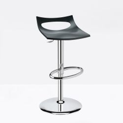 The column with gas piston and the rounded base of 44 cm diameter are made of chromed steel. The technopolymer shell is available in different colours.