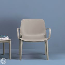 Lounge chair with armrests made entirely of glass fiber reinforced technopolymer in air molding. The material is very strong, flexible and suitable for outdoor use. Not afraid of the weather and therefore it can be used in the garden or terrace.