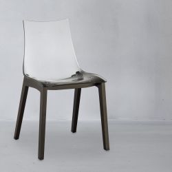 Modern chair with natural or wengè stained beech wood structure and polycarbonate seat available in transparent smoked grey or transparent.