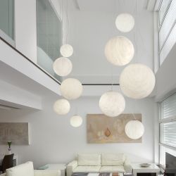 A cascade of spheres of different dimensions, similar to a pendant of precious stones or to planets of a distant constellation; Mineral is a majestic and elegant pendant lamp, that catch attention with its delicate charme.