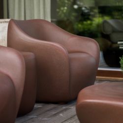 Made of recycled polyethylene, it stands out for its fluid and welcoming shapes, perfect for furnishing indoor and outdoor spaces with personality.
