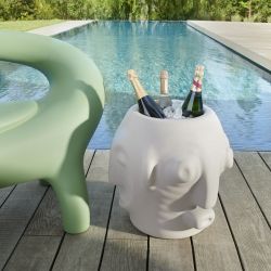 This bottle holder has an ironic and contemporary design. The base has three ethnic-style faces revisited in a pop key that recall African art.