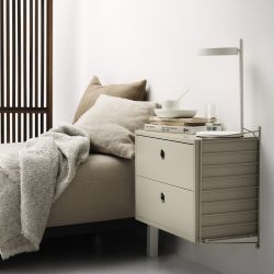 The String Bedroom A bedside table is made up of the modular elements of String System, a flexible solution for creating customized furnishing projects. With String System you can create combinations with various elements, adding or modifying the composition. By contacting Customer Service, for example, you can: