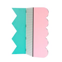 Made up of three panels , it plays with shapes and colours to transform the space into a dynamic and creative environment.