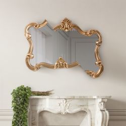 Traditional shapes reinterpreted with originality. The golden frame of the mirror breaks down, giving life to a surface with coplanar levels resulting from an impossible translation. The mirror seems to be in motion, as if by magic.