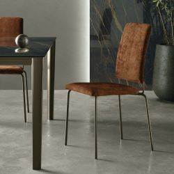 Mila has a sophisticated design, with elongated shapes that make the seat extremely comfortable. Ideal for the dining room, this chair has a painted metal frame and padded seat and back, covered in imitation leather, velvet or fabric.