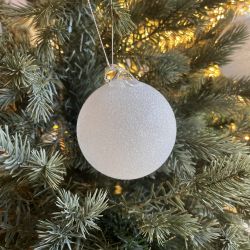 These Christmas balls are perfect for the tree or to decorate the house during the Holidays. The balls are made of glass and the surface is covered with light gray glitter.
