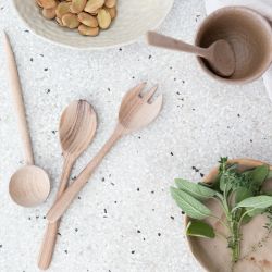 Perfect for bringing a warm and welcoming atmosphere to the table, this set has been carefully handcrafted, each piece is unique and unrepeatable. The walnut wood, with its natural grain, adds a touch of rustic elegance to your kitchen.