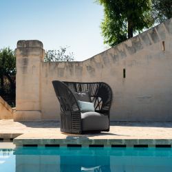 The Cliff Dèco lounge amrchair furnishes the outdoor areas of your home with elegance and an exotic touch, thanks to its smooth shapes and the geometrical pattern created by the woven rope.